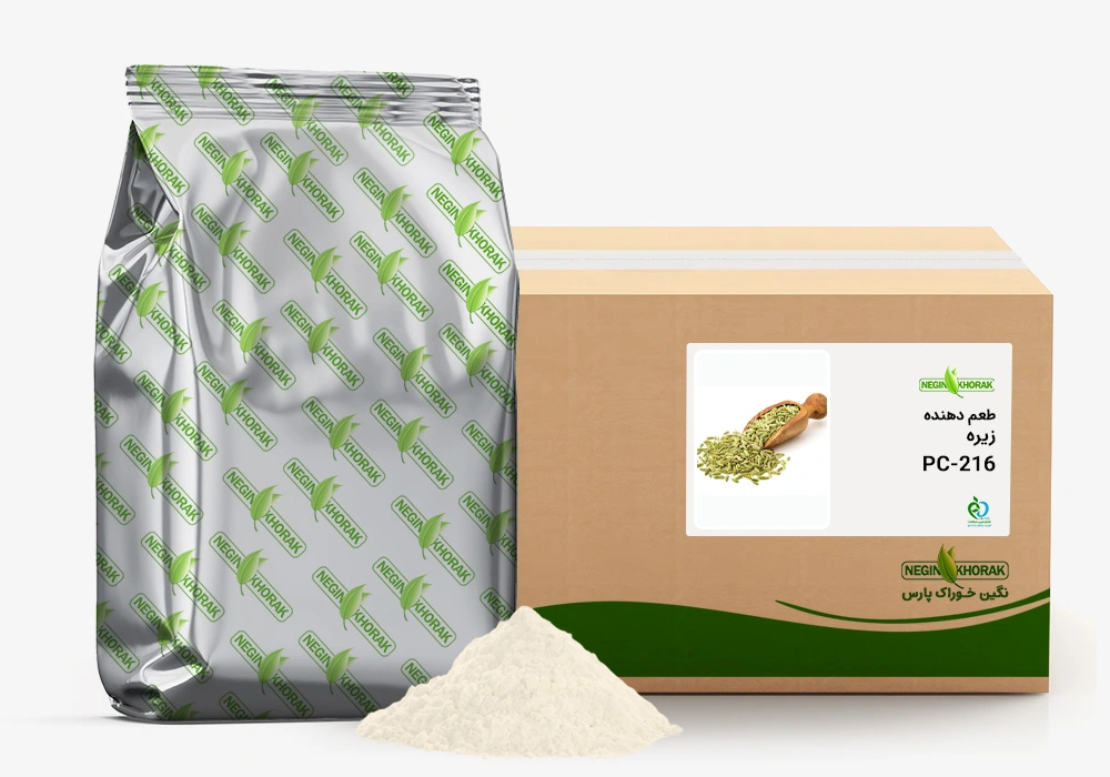 ترکیبی از روغن، اسانس زیره و یک پرکننده پودری طعم دهنده زیره PC-216 می باشد. رنگ محصول سفید بوده و عمده مولکول های این طعم دهنده cuminaldehyde می باشد. این محصول امکان ارائه شدن به صورت انکپسوله را نیز دارد.