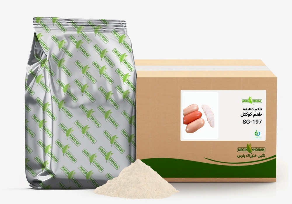 ترکیبی از ادویه های طبیعی، طعم دهنده های طبیعی و شبه طبیعی جهت مصرف در محصول کوکتل با 55% گوشت طعم دهنده کوکتل SG-197 می باشد. پروفایل طعمی محصول شامل فلفل سیاه، میخک، جوزهندی می باشد.